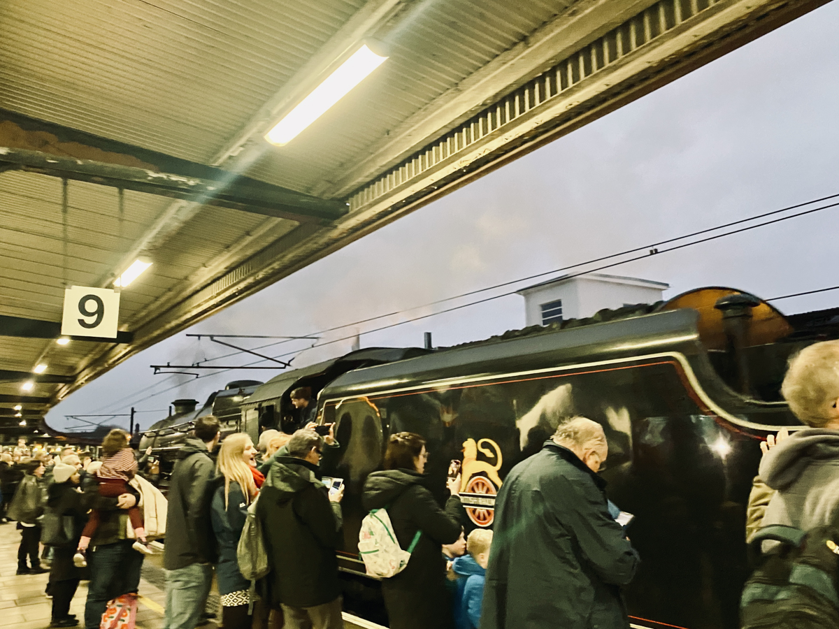 Ez egy egynapos kiruccanás volt. A vonat reggel háromnegyed nyolckor indult a londoni, legendás King’s Cross állomásról, és negyed kettő körül érkezett meg York vasútállomására. Ezalatt a szerelvény öt helyen állt meg: három helyen utasokat vett fel, két megálló pedig technikai okokból történt (vízfelvétel, karbantartás stb.).